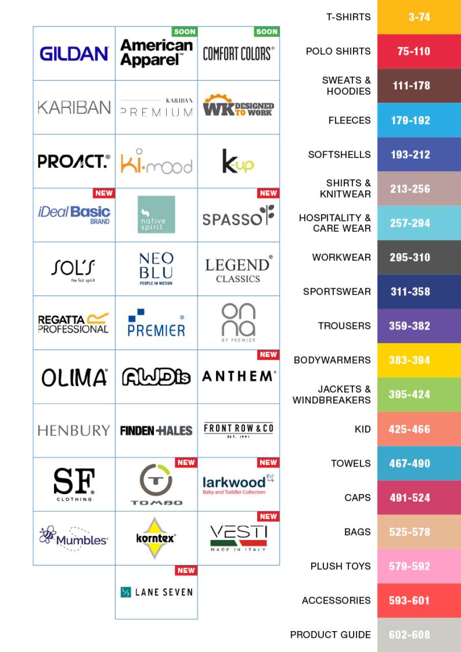 • Tento katalog nabízí nejširší škálu propagačního a firemního oblečení, včetně klasických triček, polokošil, mikin, bund, kalhot a doplňků, stejně jako sportovního oblečení a pracovních oděvů.